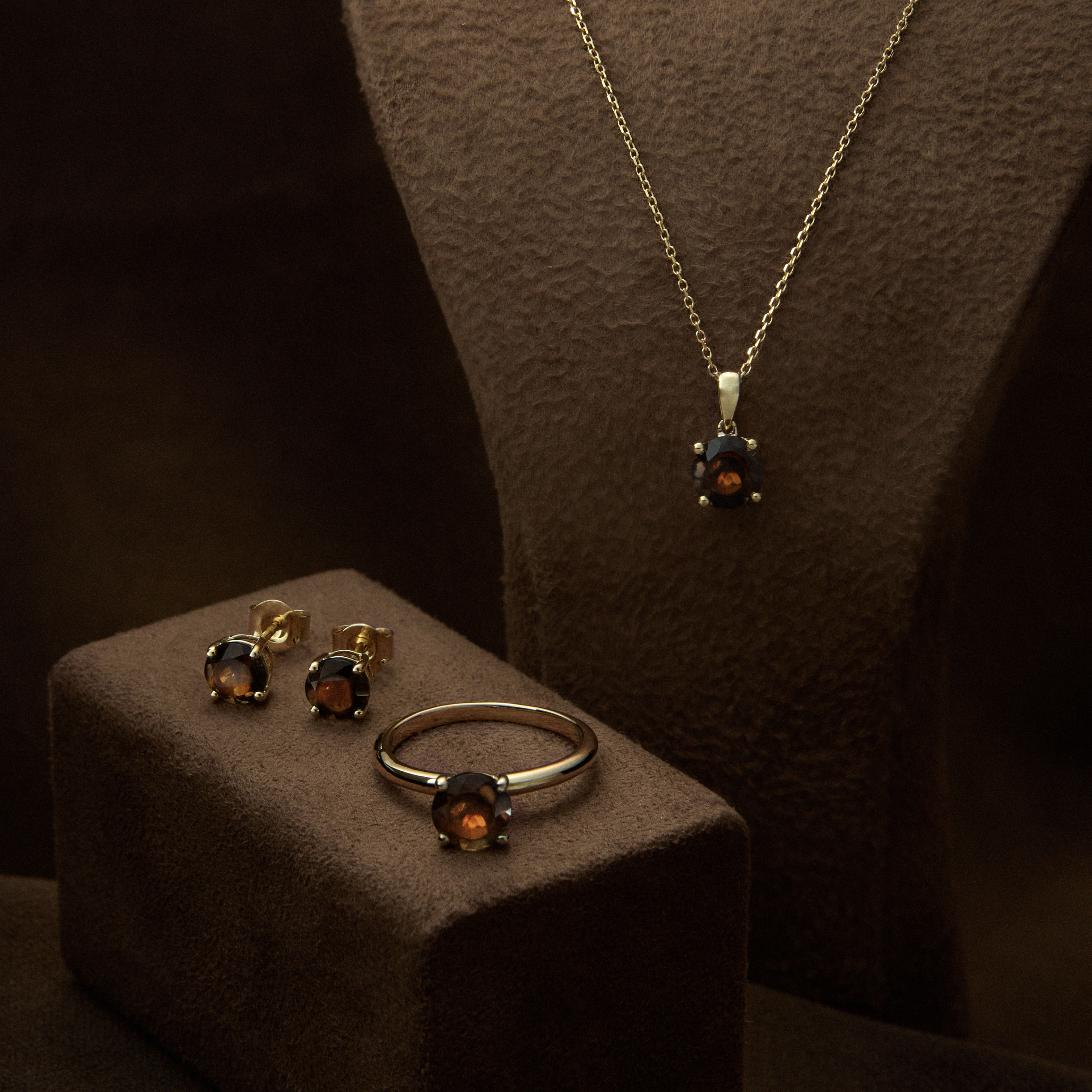 Aubella Espresso -kaulakoru on klassinen ja elegantti koru, joka sopii kaikkiin tilaisuuksiin. Kaulakoru on valmistettu 14 karaatin keltakullasta, ja sitä koristaa näyttävä savukvartsi. Pituus 42 cm + 3 cm säätövara. Saatavilla yhteensopivat korvakorut ja sormus.