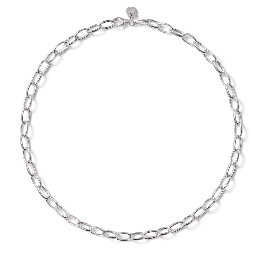 Näyttävä kaulakoru, joka toimii täydellisenä alustana kukkaheloille ja tyylikkäänä myös sellaisenaan. Leveä ovaalipapuketju korostaa valitsemiasi heloja, ja säädettävä pituus takaa hyvän istuvuuden. Helat kiinnittyvät kätevästi jousirengaslukolla.