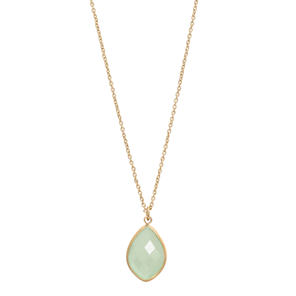 Kullanvärisessä kaulakorussa roikkuu vaaleanvihreä, pisaranmuotoinen riipus, joka tuo koruun herkkyyttä. Säädettävä 42 + 5 cm ketju takaa täydellisen istuvuuden. Mallistosta on saatavilla myös yhteensopivat korvakorut – luo upea ja yhtenäinen korukokonaisuus.