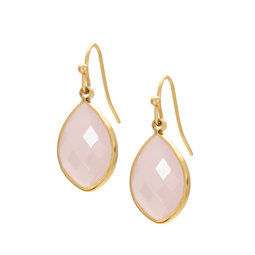 Näyttävät kullanväriset korvakorut on viimeistelty roikkuvalla, vaaleanpunaisella pisaranmuotoisella kivellä, joka heijastaa valoa kauniisti. Kevyt koukkukiinnitys tekee korvakoruista miellyttävät käyttää. Mallistosta on saatavilla myös yhteensopiva kaulakoru.