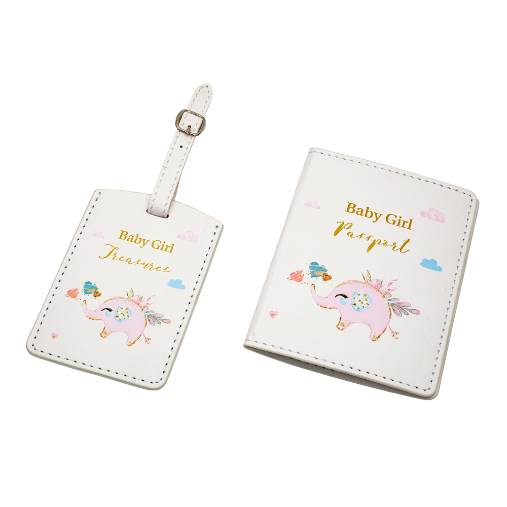 Söpö matkasetti pienelle matkailijalle! Settiin kuuluu passikotelo ja matkalaukun nimilappu. Valkoisessa designissa on vaaleanpunainen norsukuvio, joka tuo helppoa tunnistettavuutta matkatavaroihin. Täydellinen lahja vauvalle tai taaperolle ensimmäisiä matkoja varten.