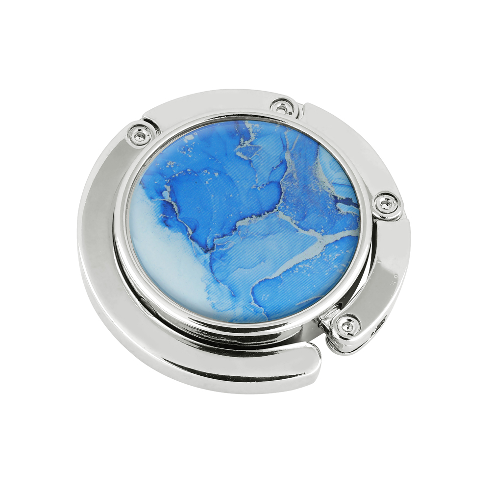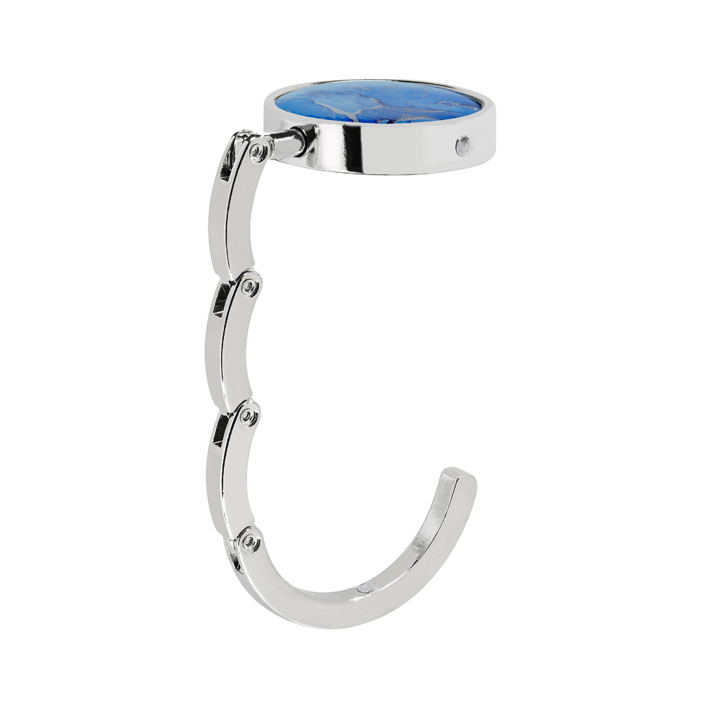 Laukkukoukku on käytännöllinen lisävaruste arkeen. Hopeanvärinen koukku on koristeltu sinisellä marmorikuvioinnilla. Koukku kiinnittyy helposti pöydän reunaan ja pitää laukkusi siististi roikkumassa – täydellinen toimistolle, kahvilaan tai matkalle. Sopii useimpiin laukkuihin ja on helppo kuljettaa mukana.