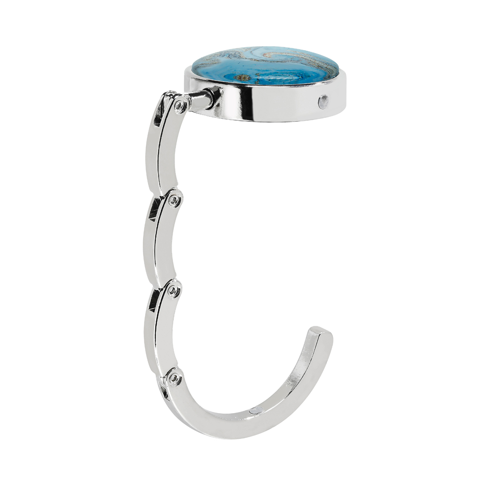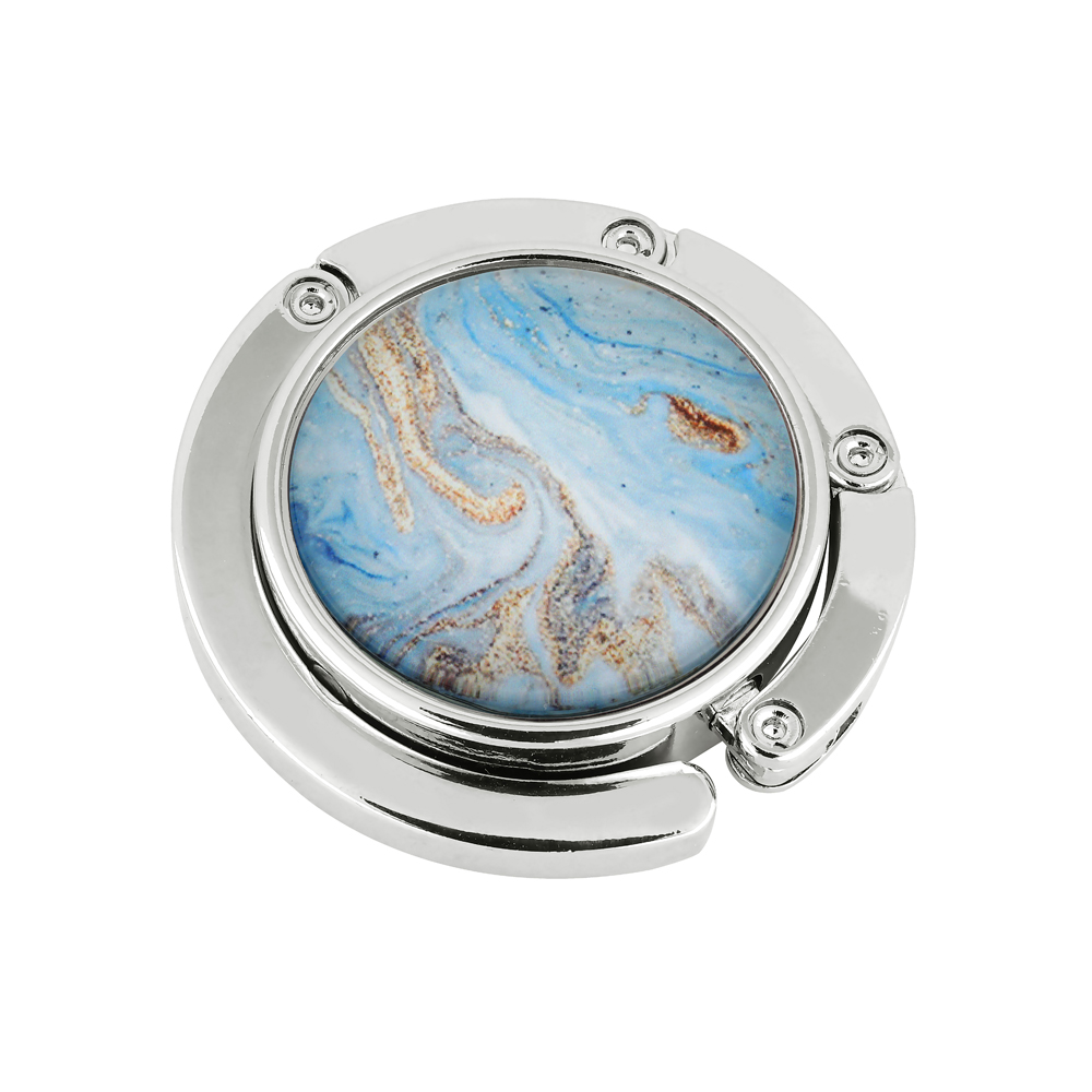 Laukkukoukku on käytännöllinen lisävaruste arkeen. Hopeanvärinen koukku on koristeltu vaaleansinisellä marmorikuvioinnilla. Koukku kiinnittyy helposti pöydän reunaan ja pitää laukkusi siististi roikkumassa – täydellinen toimistolle, kahvilaan tai matkalle. Sopii useimpiin laukkuihin ja on helppo kuljettaa mukana.