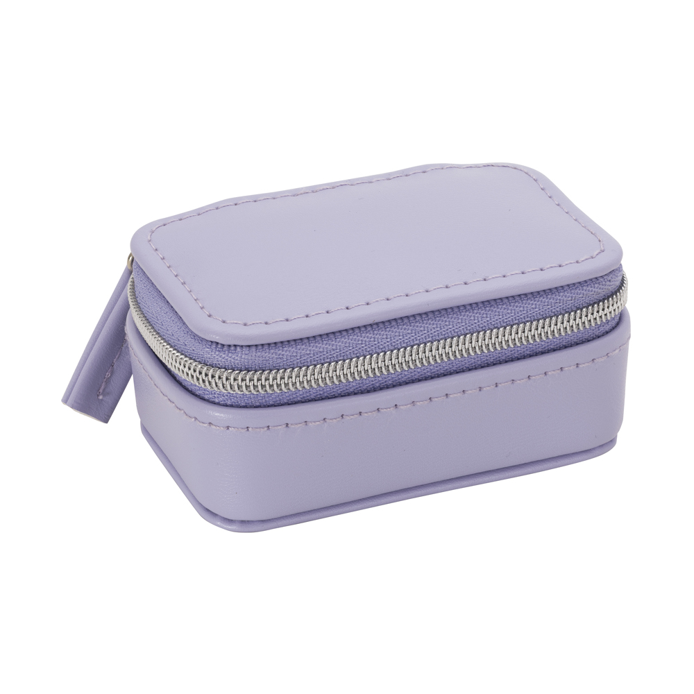Mini korurasia on täydellinen matkalle tai laukkuun mukaan. Liila tekonahkapinta ja vaalea, samettimainen sisus luovat ihastuttavan ilmeen. Sisältä löytyy kätevä paikka sormuksille ja korvakoruille. Koko: 8,5 x 5 x 4 cm. Käytännöllinen ja kaunis säilytysratkaisu koruillesi.