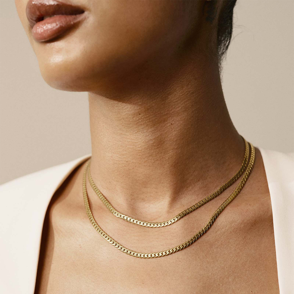 Mockberg Serpentine käärmeketjun litteät ja sulavat lenkit heijastavat valoa jokaisessa liikkeessä, tuoden kaula-aukkoon hienostuneen, ylellisen hohteen. Vaivattoman tyylikäs koru, joka tekee yksinkertaisestakin asusta huolitellun. Säädettävä pituus 45 + 5 cm.