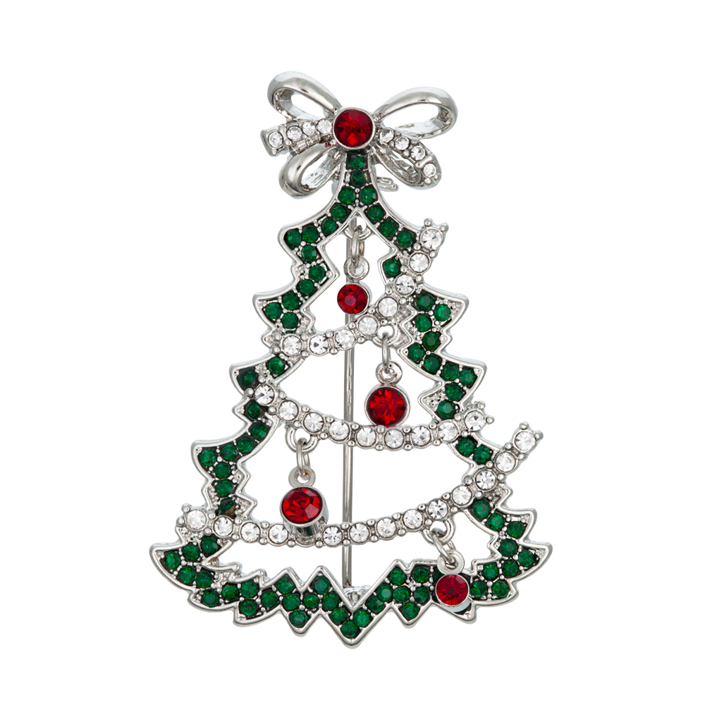 Söpö ja juhlavasti säihkyvä rintakoru joulukuusi. Hopeanvärinen runko ja koristeena punaiset, vihreät ja kirkkaat kivet. Täydellinen lisä joulun asusteisiin tai pikkujouluihin.