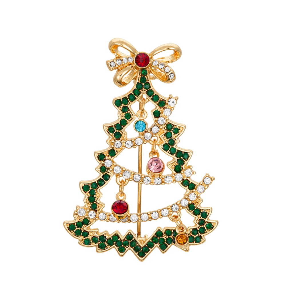Söpö ja juhlavasti säihkyvä rintakoru joulukuusi, kullanvärinen runko ja koristeena värikkäät kivet. Täydellinen lisä joulun asusteisiin tai pikkujouluihin.