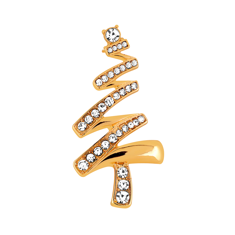 Kaunis joulukuusi rintakoru tuo iloista joulumieltä asuusi! Kullanvärinen joulukuusi on koriteltu kirkkailla kivillä, jotka tuovat kimallusta. Täydellinen lisä joulun juhla-asuun tai lahjaksi.