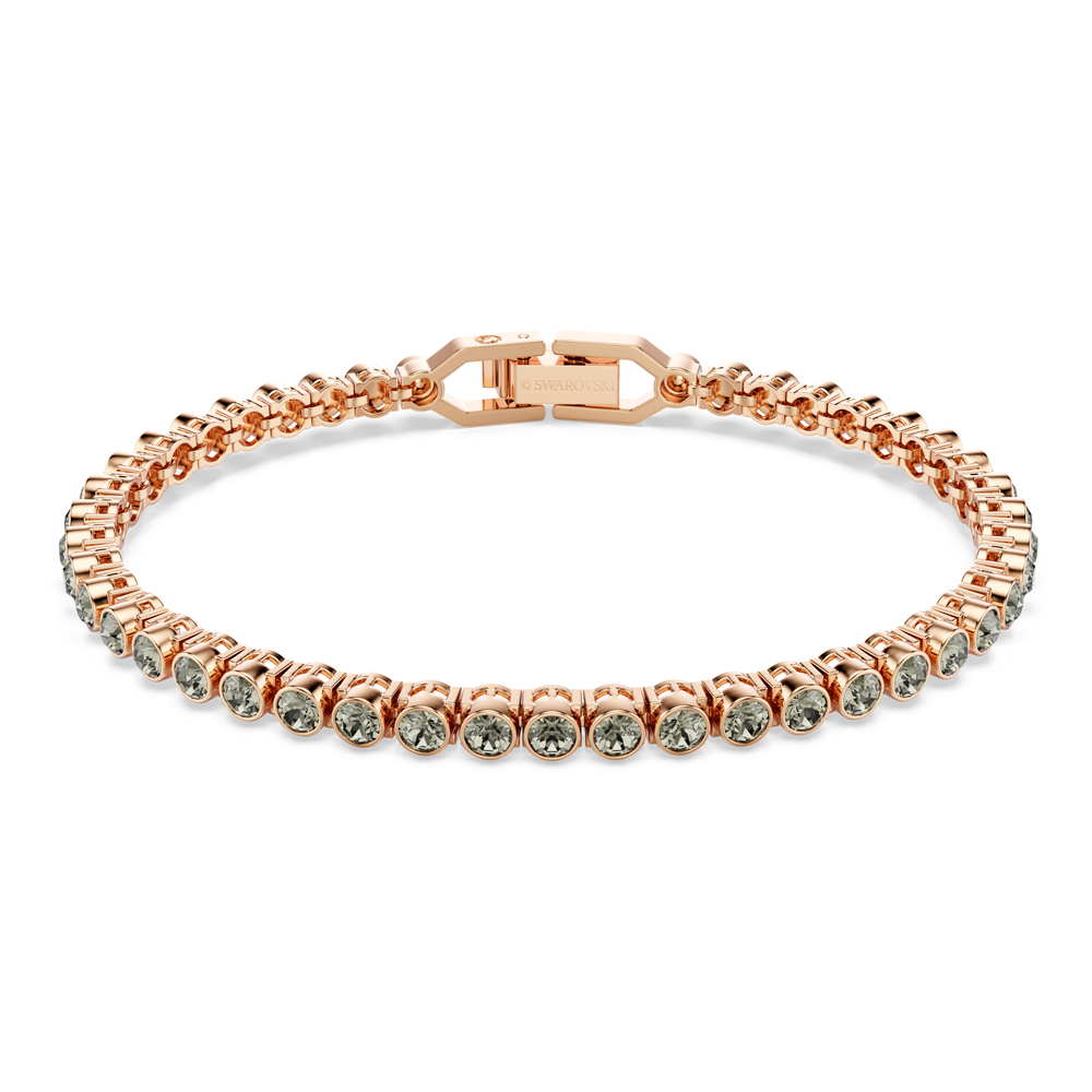 Tyylikäs Swarovski Imber Emily Tennis -rannekoru! Ruusukullanvärisessä rannekorussa säihkyy tummat kristallit. Korussa on säädettävä pituus 16,5–18,5 cm.