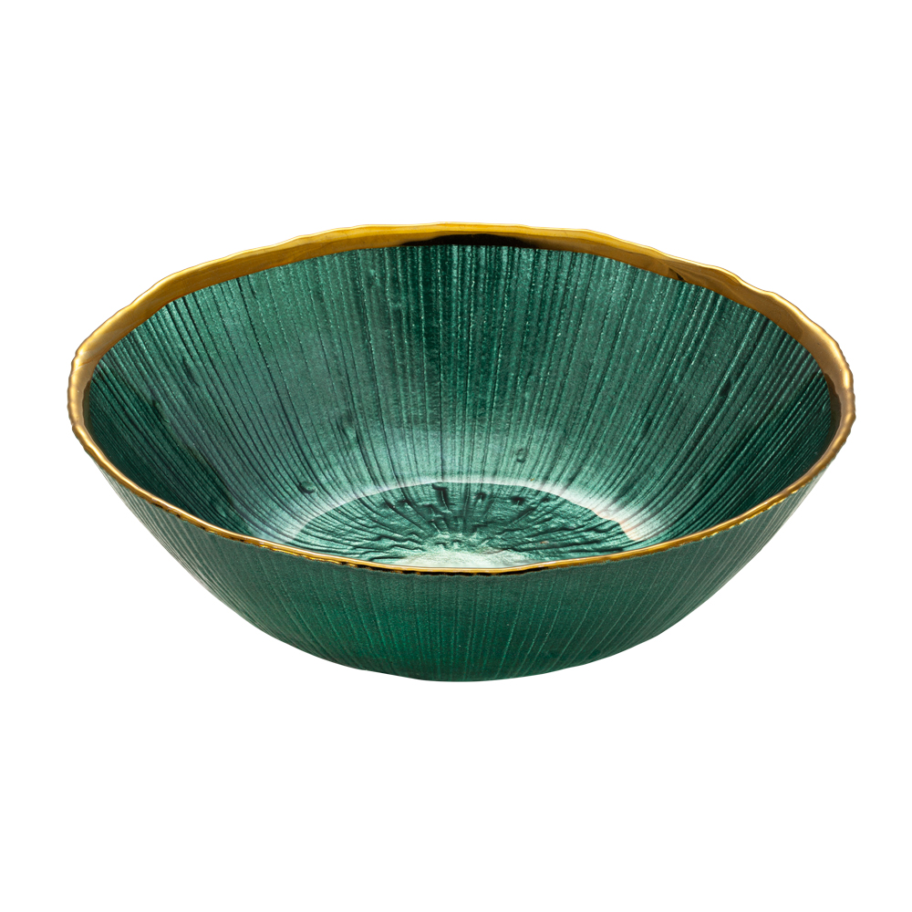 Tyylikäs kulho vihreällä värillä ja hienostuneella kultareunuksella. Sopii pienten herkkujen tarjoiluun tai koristeeksi kotiin.
