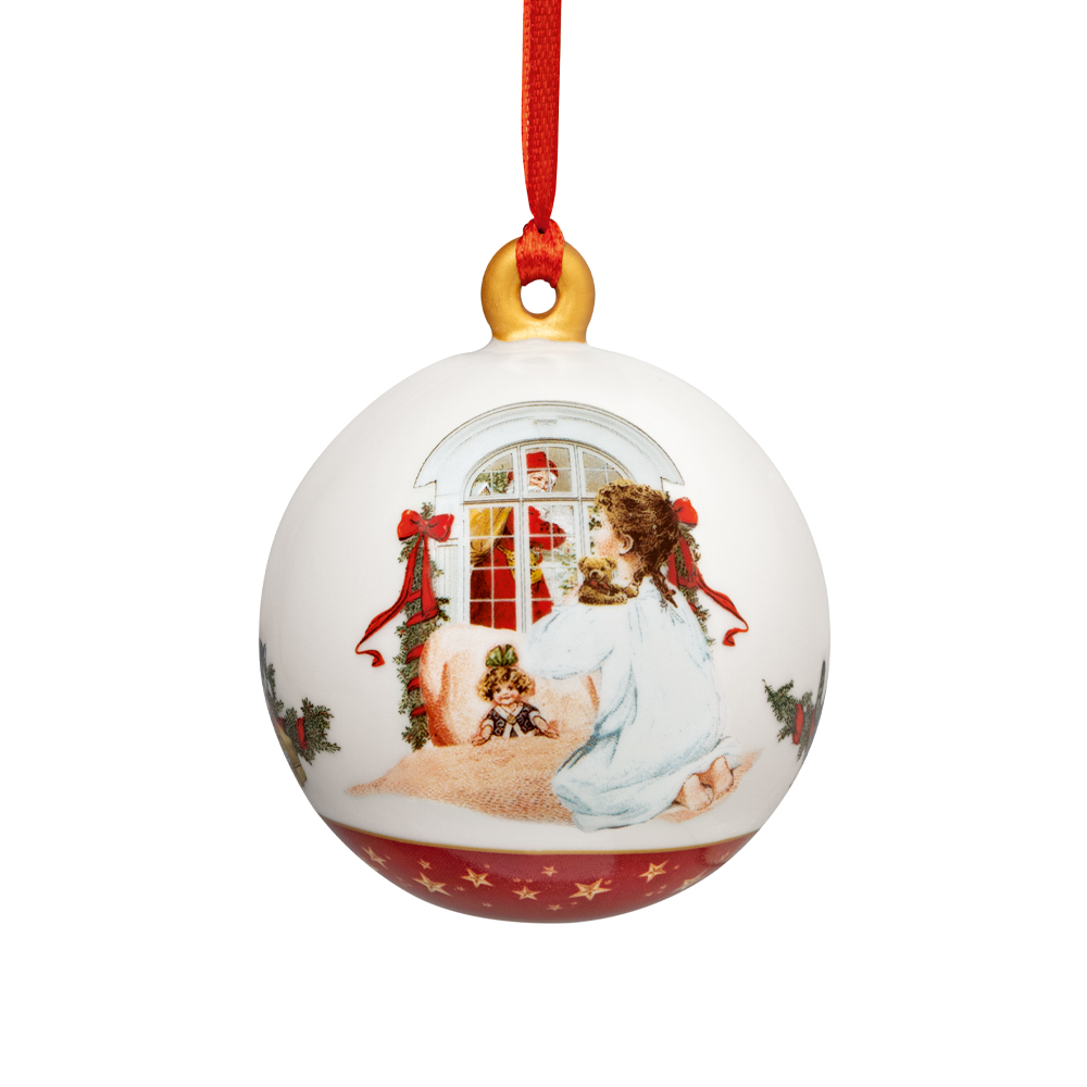 Upea Villeroy & Boch vuoden 2022 joulukoriste! Posliinisessa joulupallossa on kaunis ja ajaton jouluinen kuvitus, sekä ihastuttava joulunpunainen satiininauha. Villeroy & Boch joulupallo on keräilytuote, ja samalla myös mitä mainioin lahjaidea.